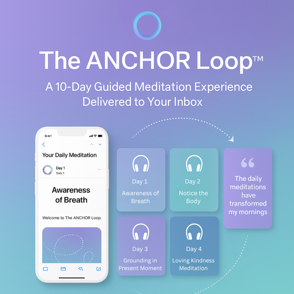 We know how hard forming a healthy habit can be. Which is why we’ve created the ANCHOR Loop. During this 10-day course, you receive one email per day. Inside the email is a guided meditation. All you have to do is find a quiet place, and listen to the guided meditation, each of which is around 10 minutes in length.